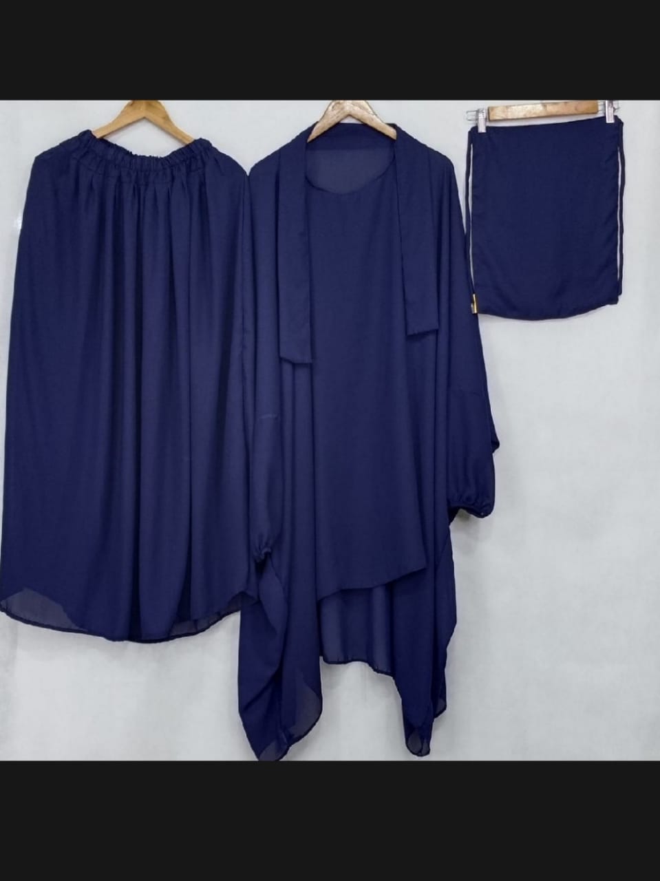 • 3 piece nikab, jilbab, and skirt set.